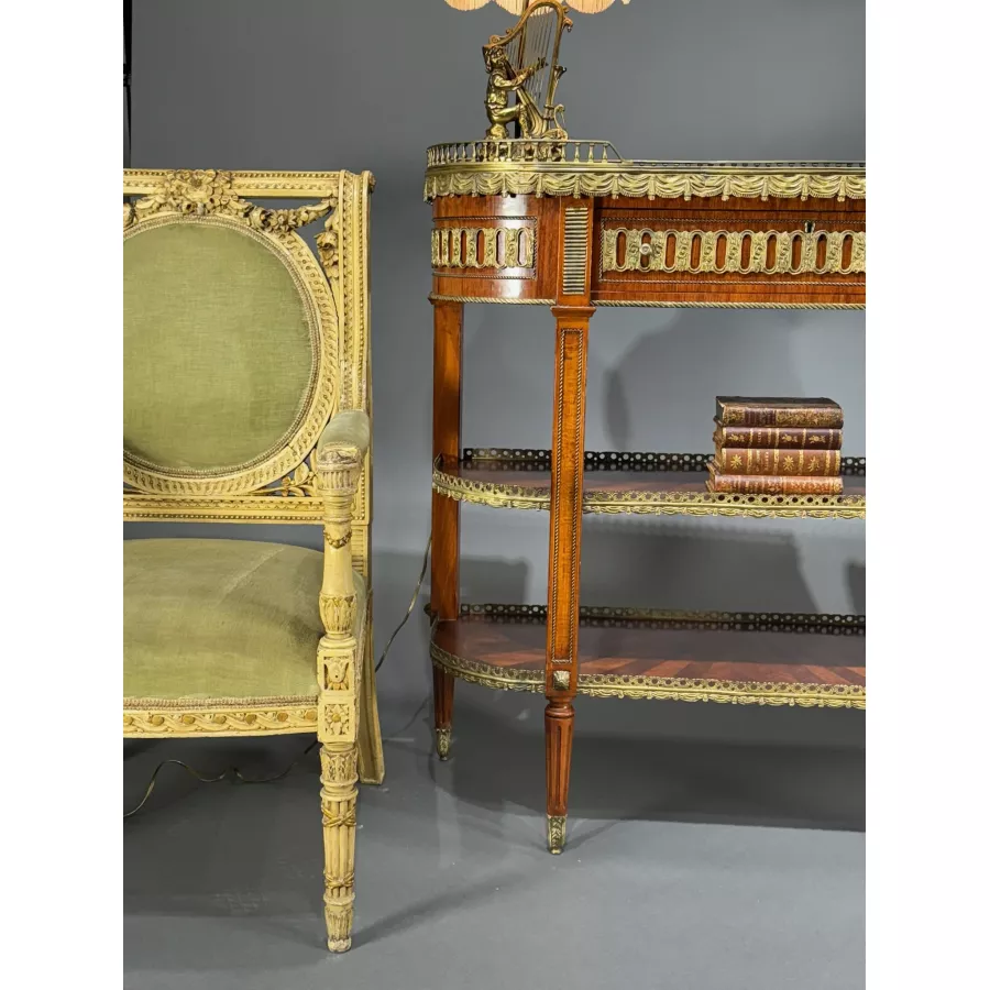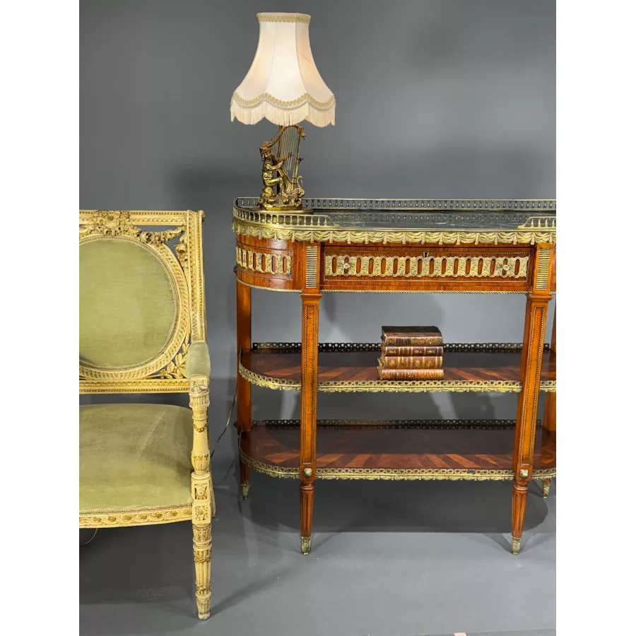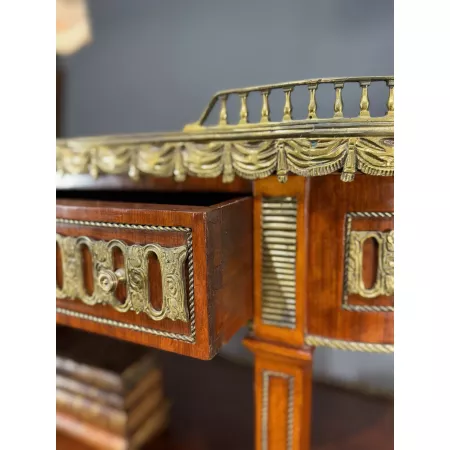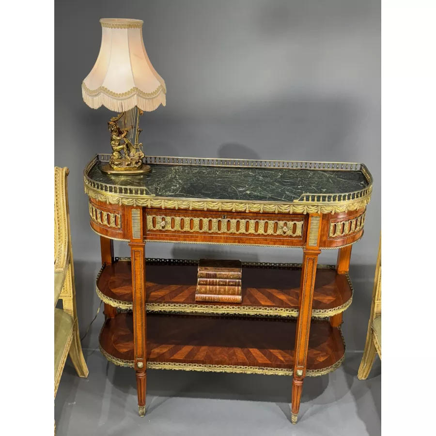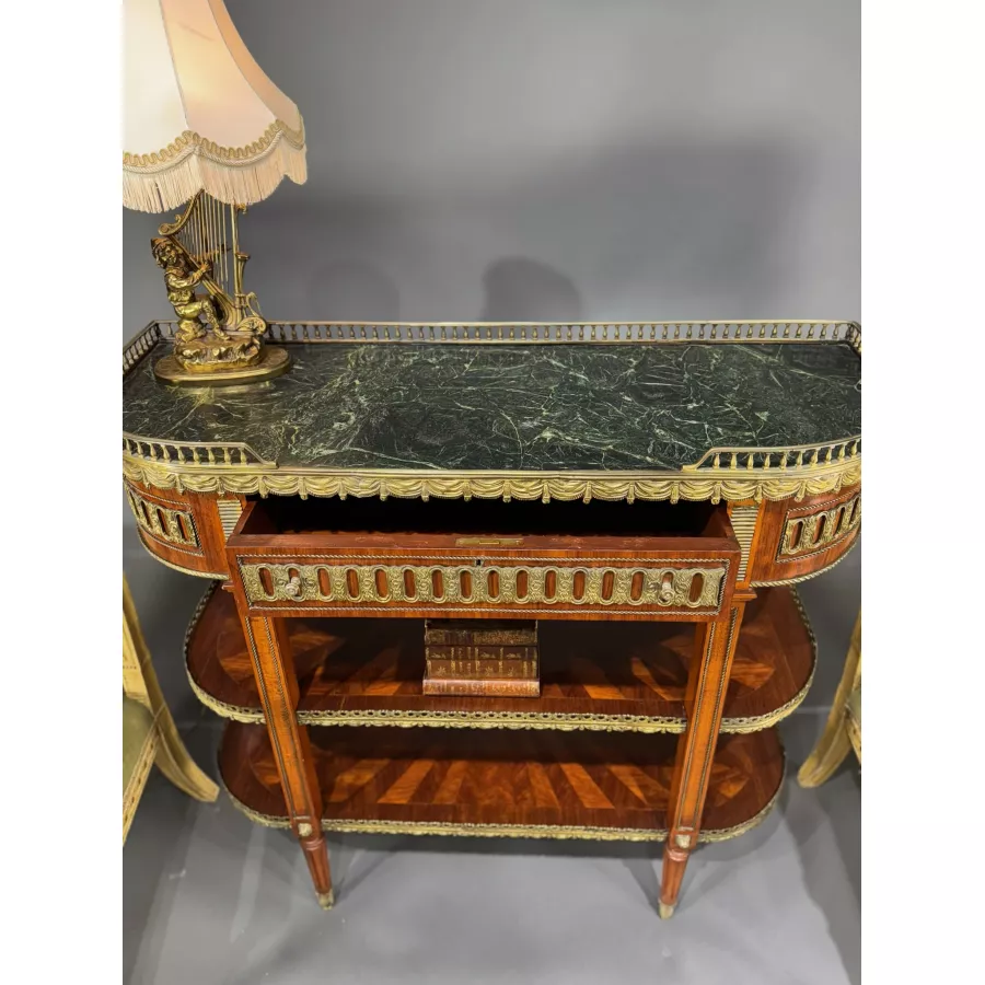 Intarsjowana konsol z marmurowym blatem w stylu Ludwik XVI Francja